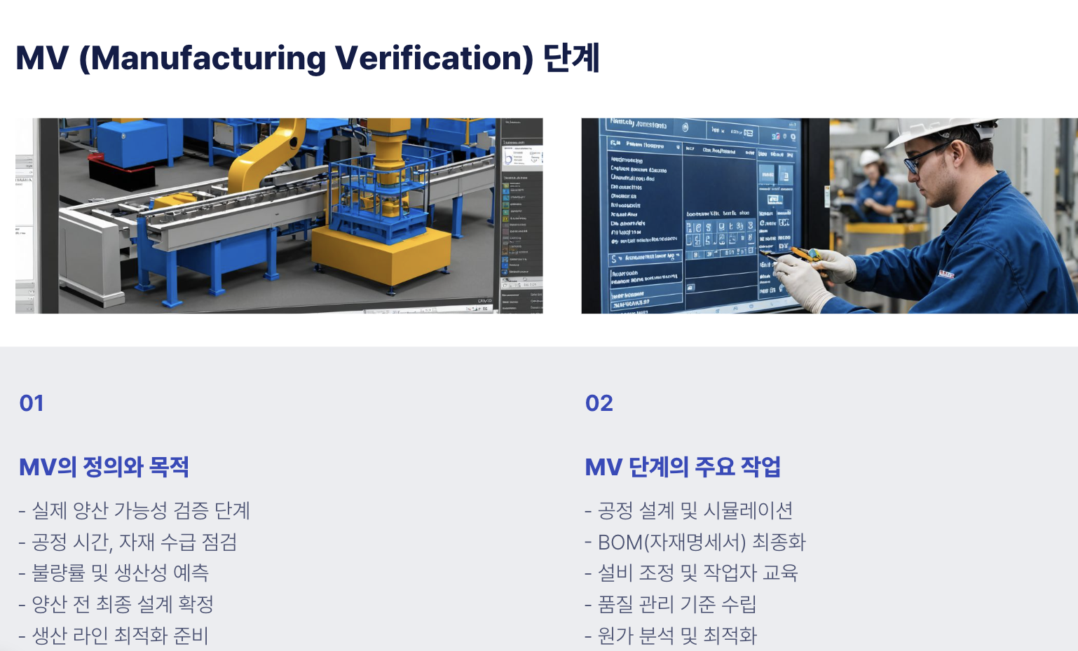 - MV 단계에서 놓쳤을 수 있는 미세한 문제(조립 오류, 자재 불량, 작업 편의성 등)를 확인